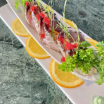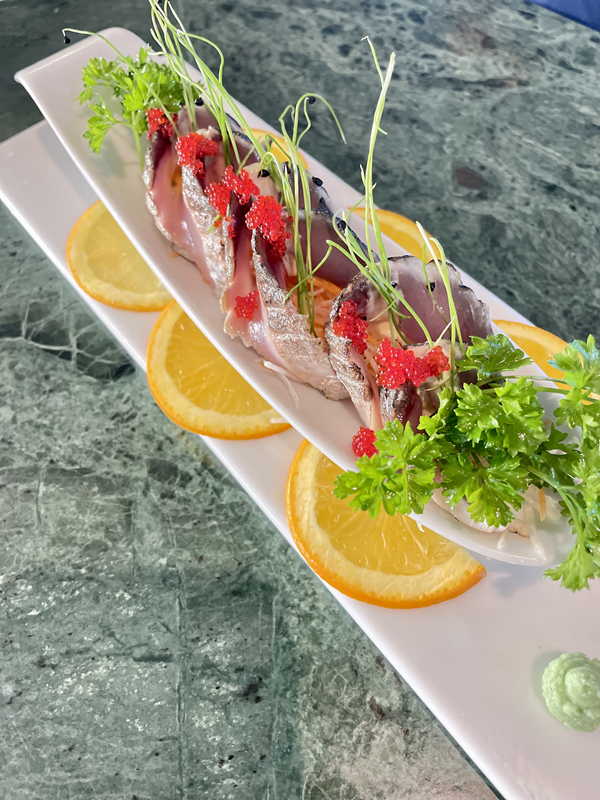 Origem Ria Formosa ( Algarve). Escola ao natural ou no molho ponzu com ovas de peixe voador.