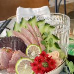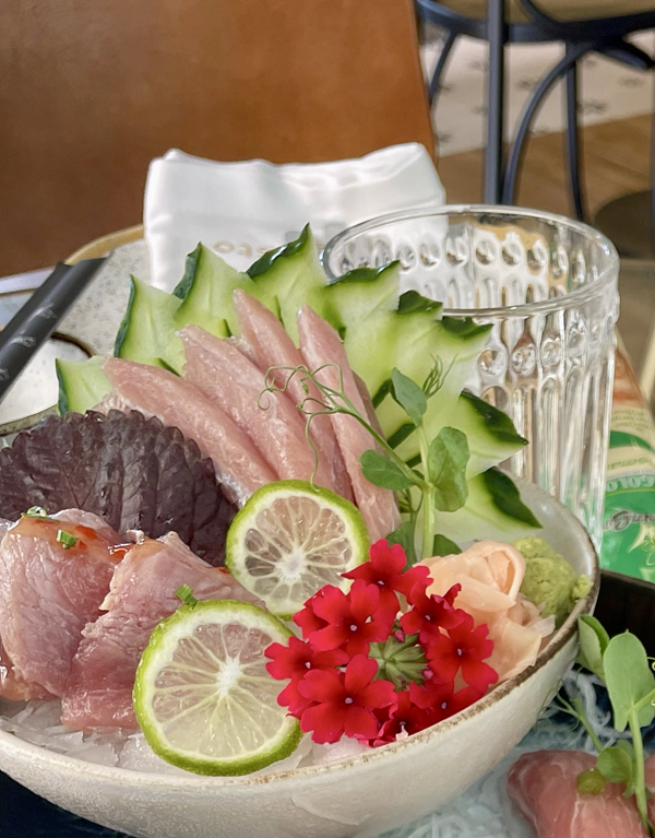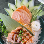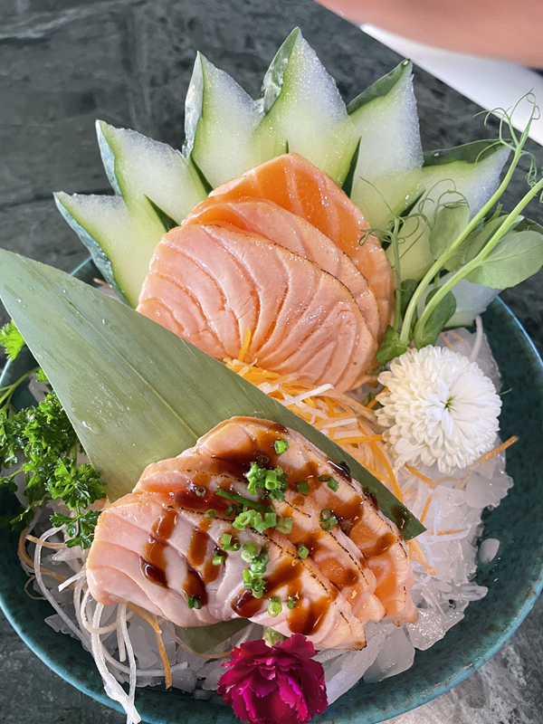 Salmão, robalo, maçã verde, cebola roxa e molho picante do chef.