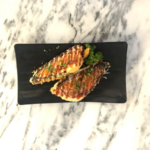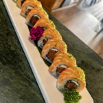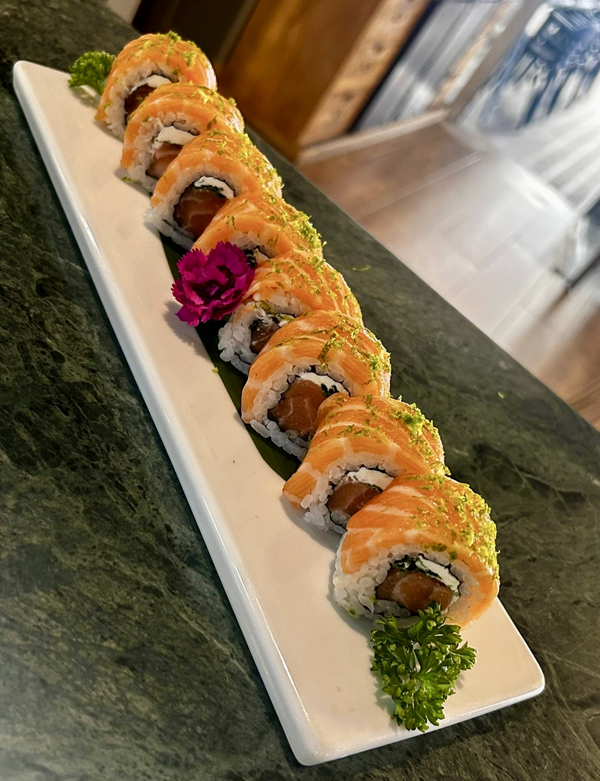 Arroz, salmão, queijo creme, hortelã e raspa de lima. 8 unid.