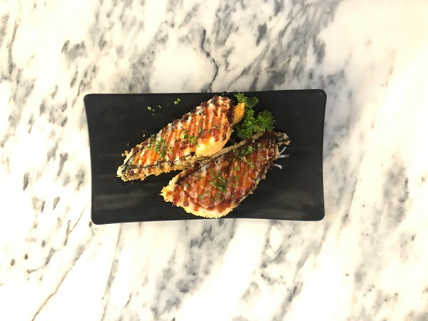 Polvo em tempura, em cama de maionese yuzo e wasabi.( 4 unidades )
